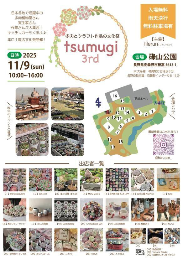 昨年に引き続き、多肉とクラフト作品の文化祭 ‘tsumugi 3rd’ に出店いたします!!