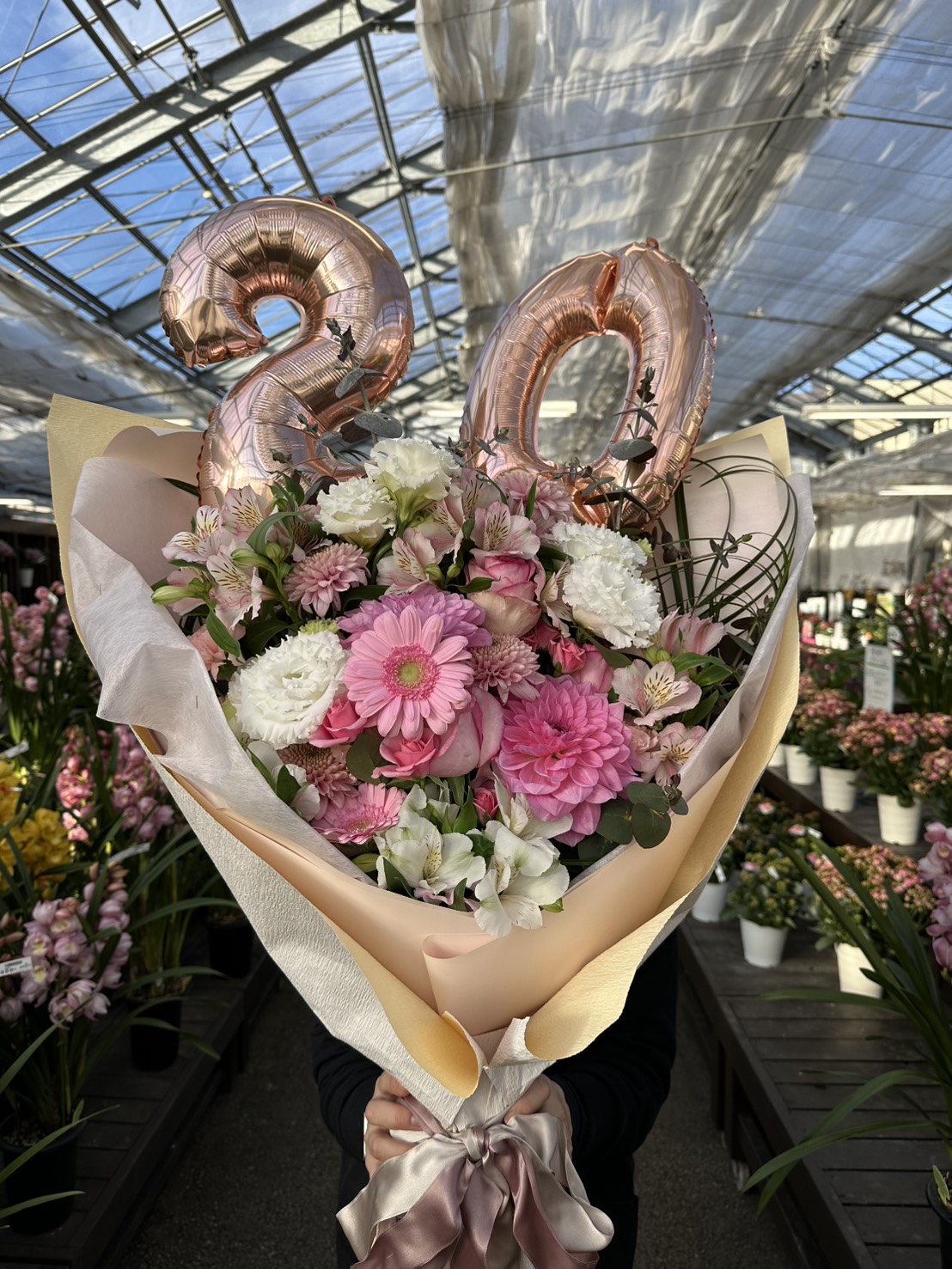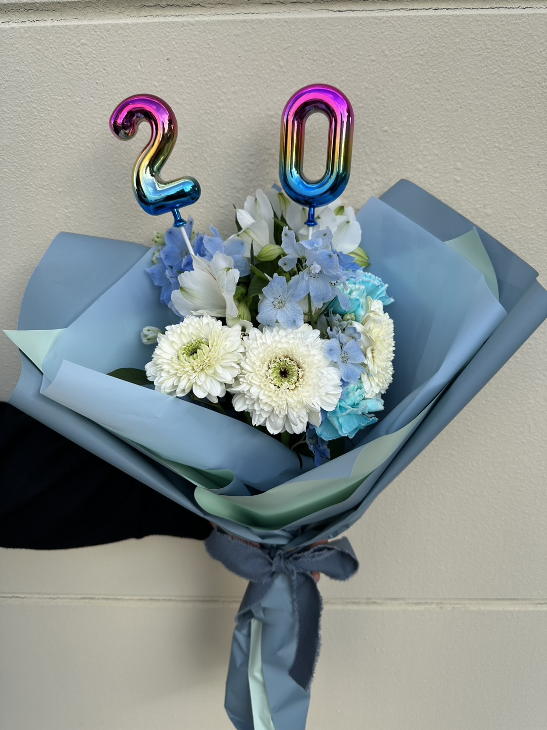 「20」のバルーンを添えた花束も数量限定で販売いたします。