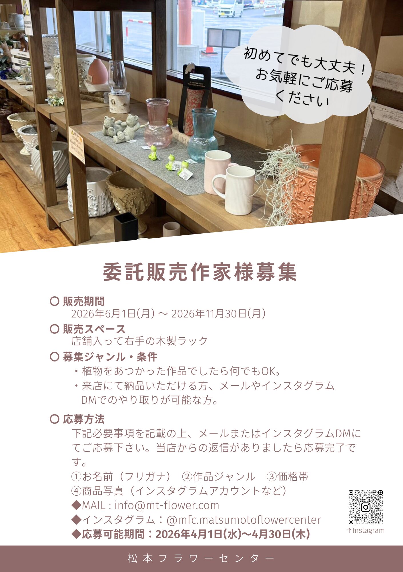 委託販売作家様募集(販売期間2026/6~2026/11)